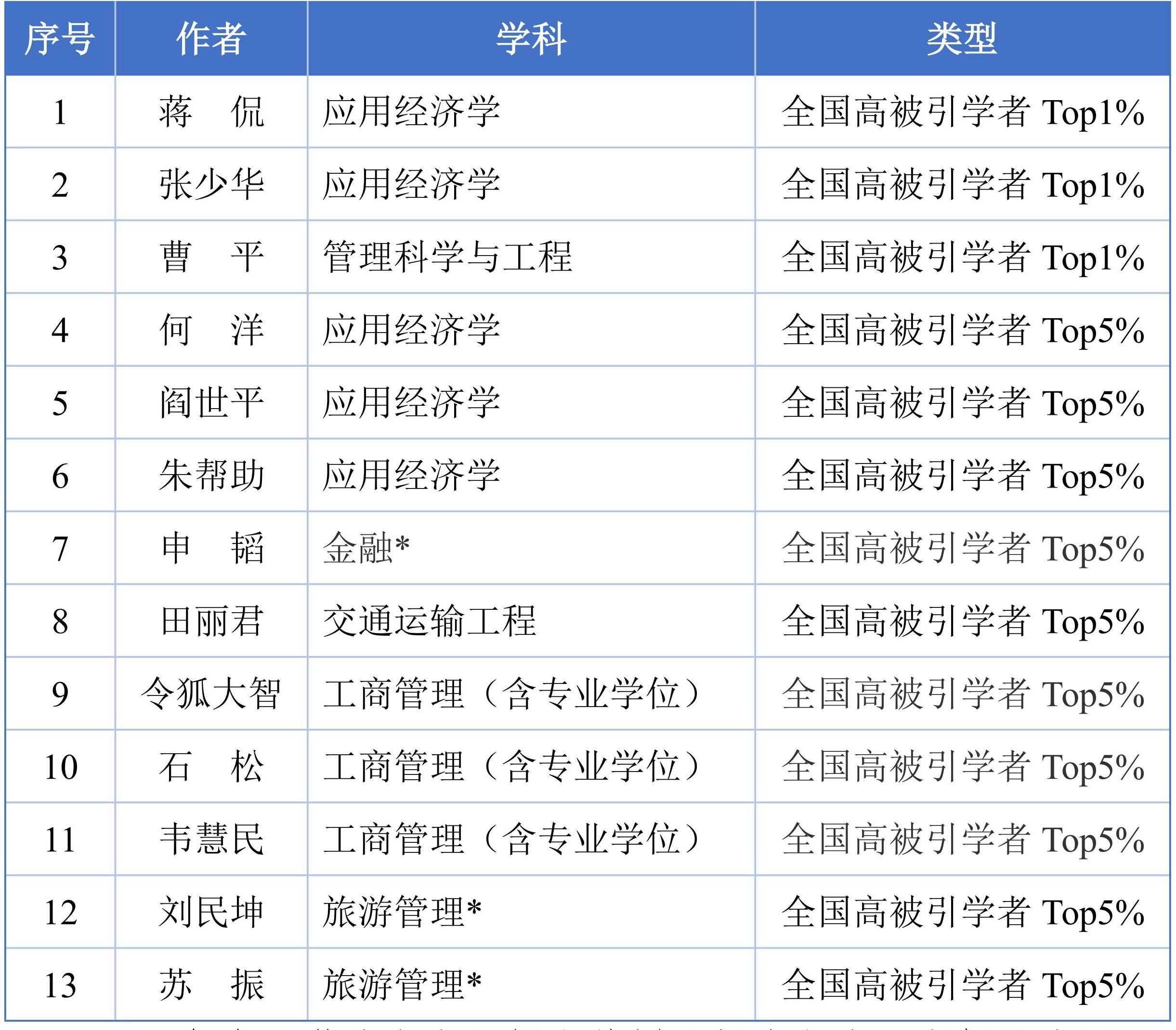 近日,中国知网下属的中国科学文献计量评价研究中心发布“2025全国高被引学者”榜单。我院共有13位教师入选,分属工商管理(含专业学位)、应用经济学、管理科学与工程、金融、旅游管理、交通运输工程学科。 -
