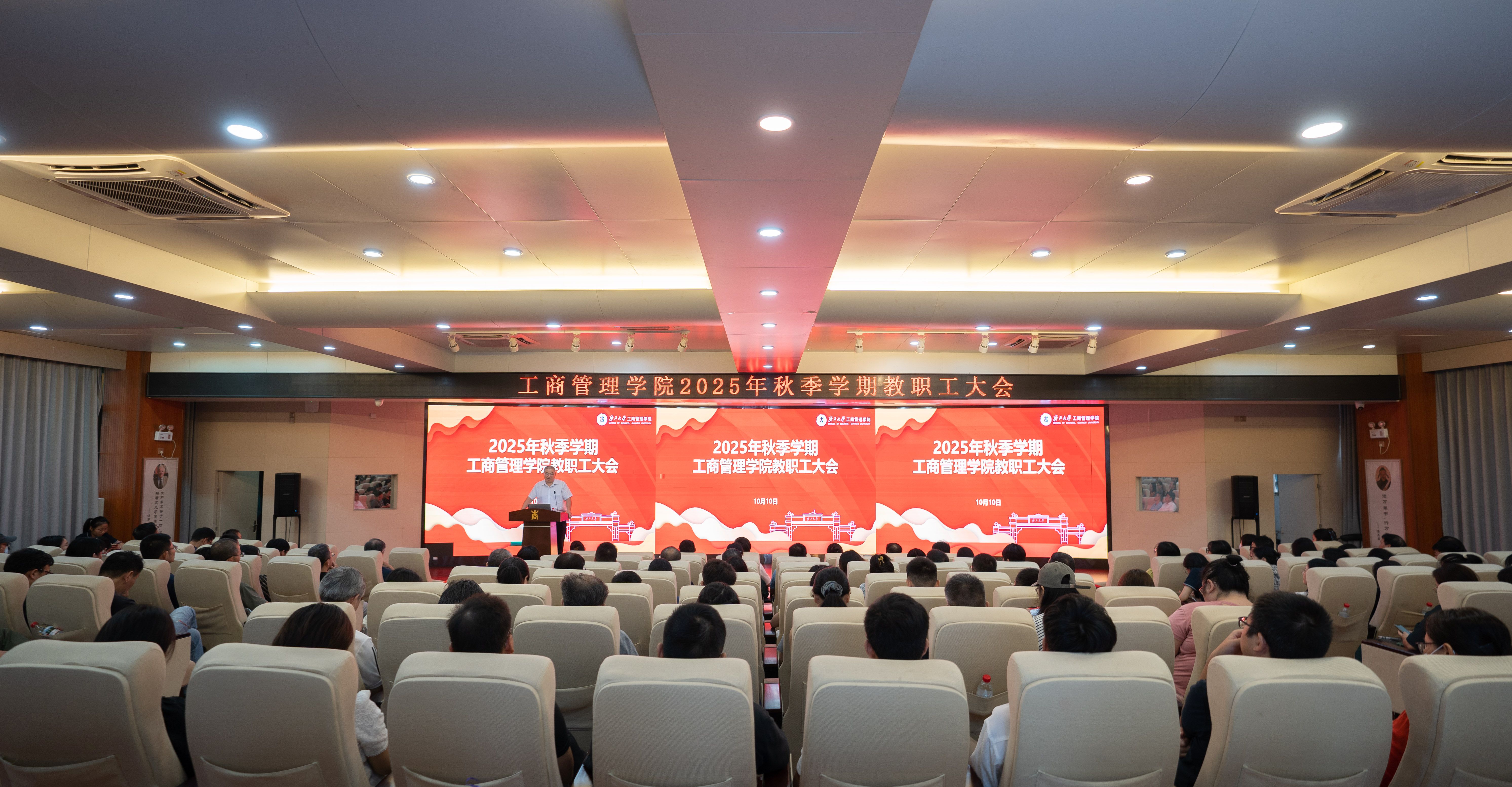 10月10日下午,我院在学院128报告厅召开2025年秋季学期教职工大会,就新学期重点工作进行安排部署。学院党委书记黄晋、院长朱帮助、党委副书记肖克宁,副院长朱少英、申韬、廖东红、韦铁出席会议,全体教职工参加了会议。会议由朱帮助主持。 -
