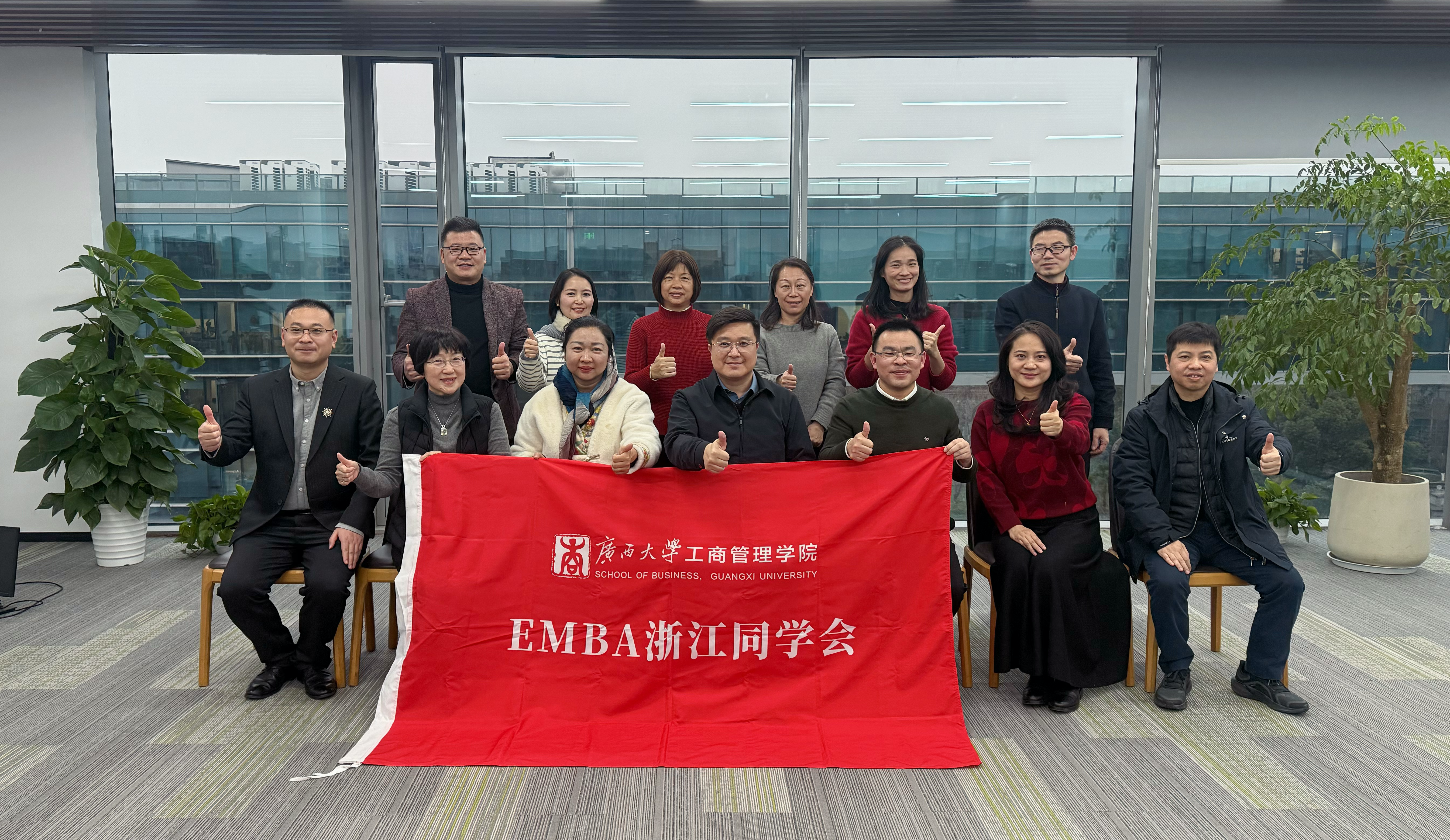 近日,广西大学工商管理学院EMBA浙江同学会2025年度工作总结会在杭州顺利召开。学院领导班子出席会议,与EMBA浙江同学会理事会成员、校友代表齐聚一堂,共叙情谊、总结工作、共谋发展。会议由EMBA浙江同学会副秘书长刘超锋主持。 -