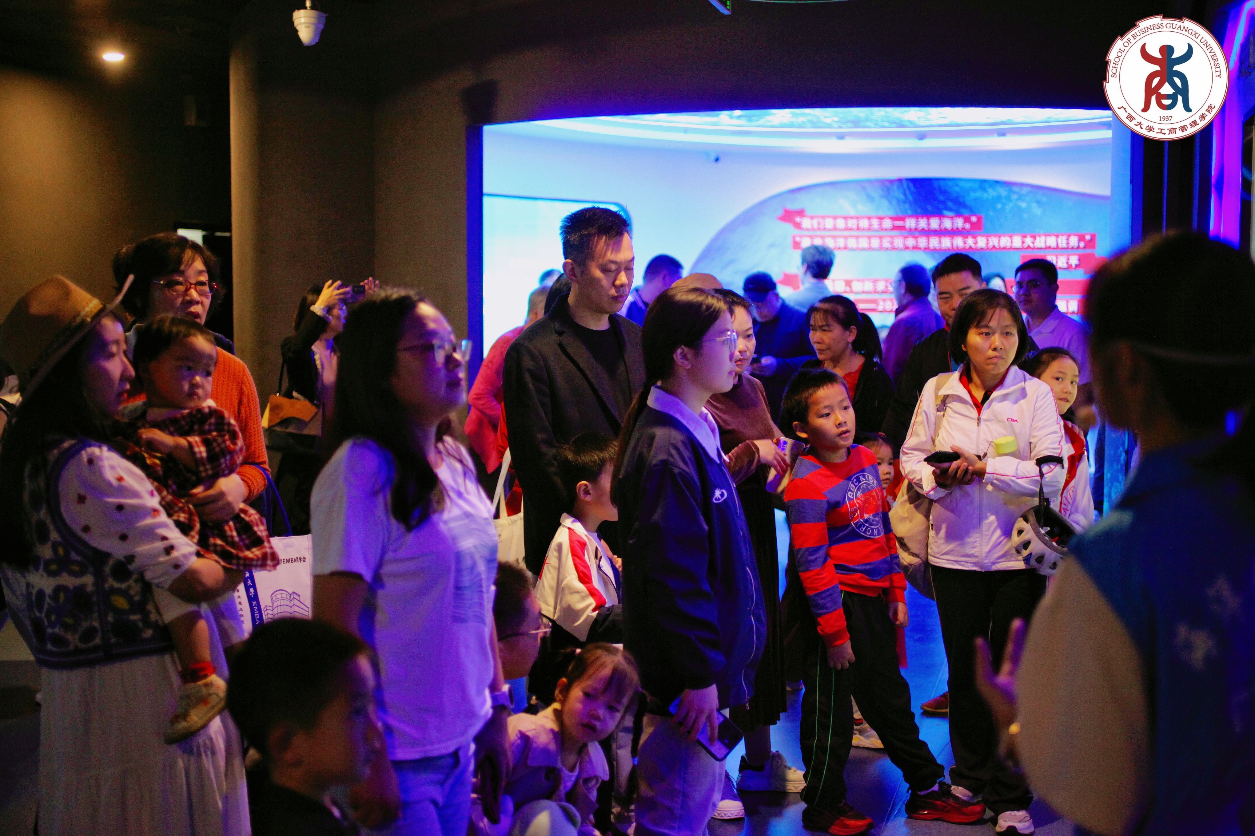 期间,大家还一同参观了海洋馆。在志愿者专业细致的讲解下,神秘的海洋生物让孩子们兴奋不已,许多校友也借此机会,首次近距离感受到母校学科发展的多元魅力与科研实力的蓬勃力量。在承载着学校岁月变迁的校史馆。大家重温广西大学从创办至今的深厚积淀。对校友而言,这是一次重拾青春记忆、再忆求学时光的“温故之旅”;对家人来说,这是一次深入了解校友成长起点、读懂其精神家园的“认知之旅”,“西大情怀”在家庭中得以传承。