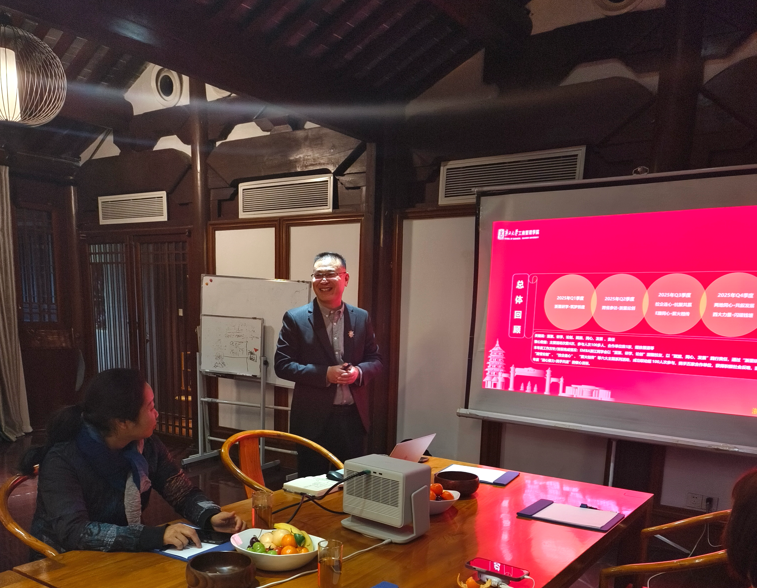 近日,广西大学工商管理学院EMBA浙江同学会2025年度工作总结会在杭州顺利召开。学院领导班子出席会议,与EMBA浙江同学会理事会成员、校友代表齐聚一堂,共叙情谊、总结工作、共谋发展。会议由EMBA浙江同学会副秘书长刘超锋主持。