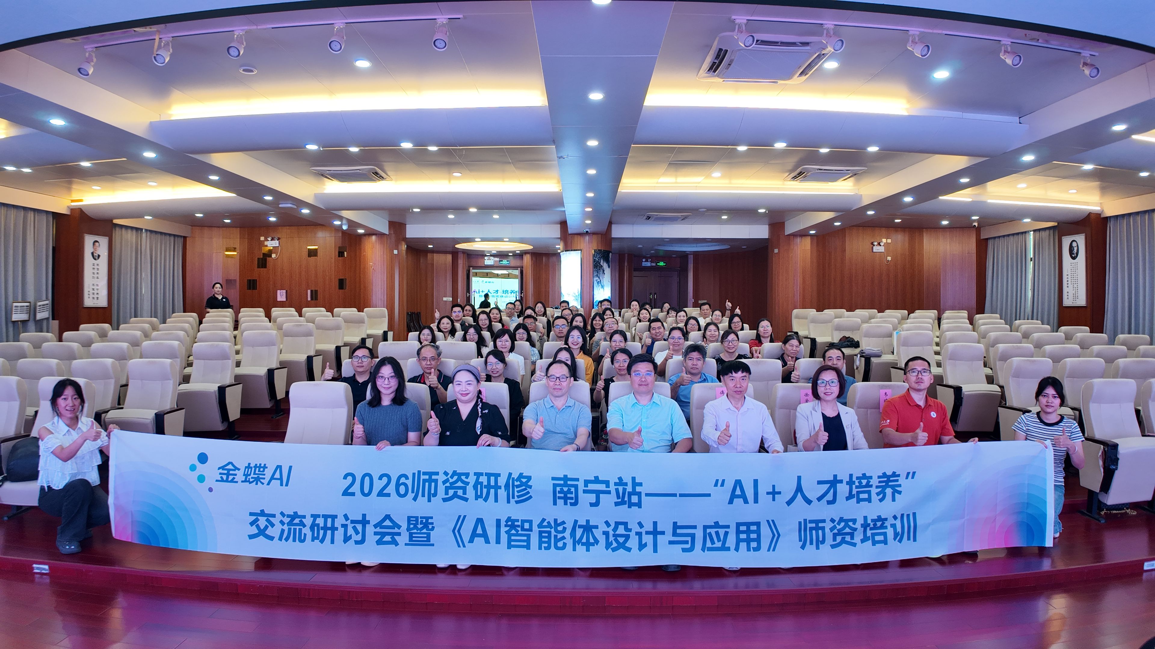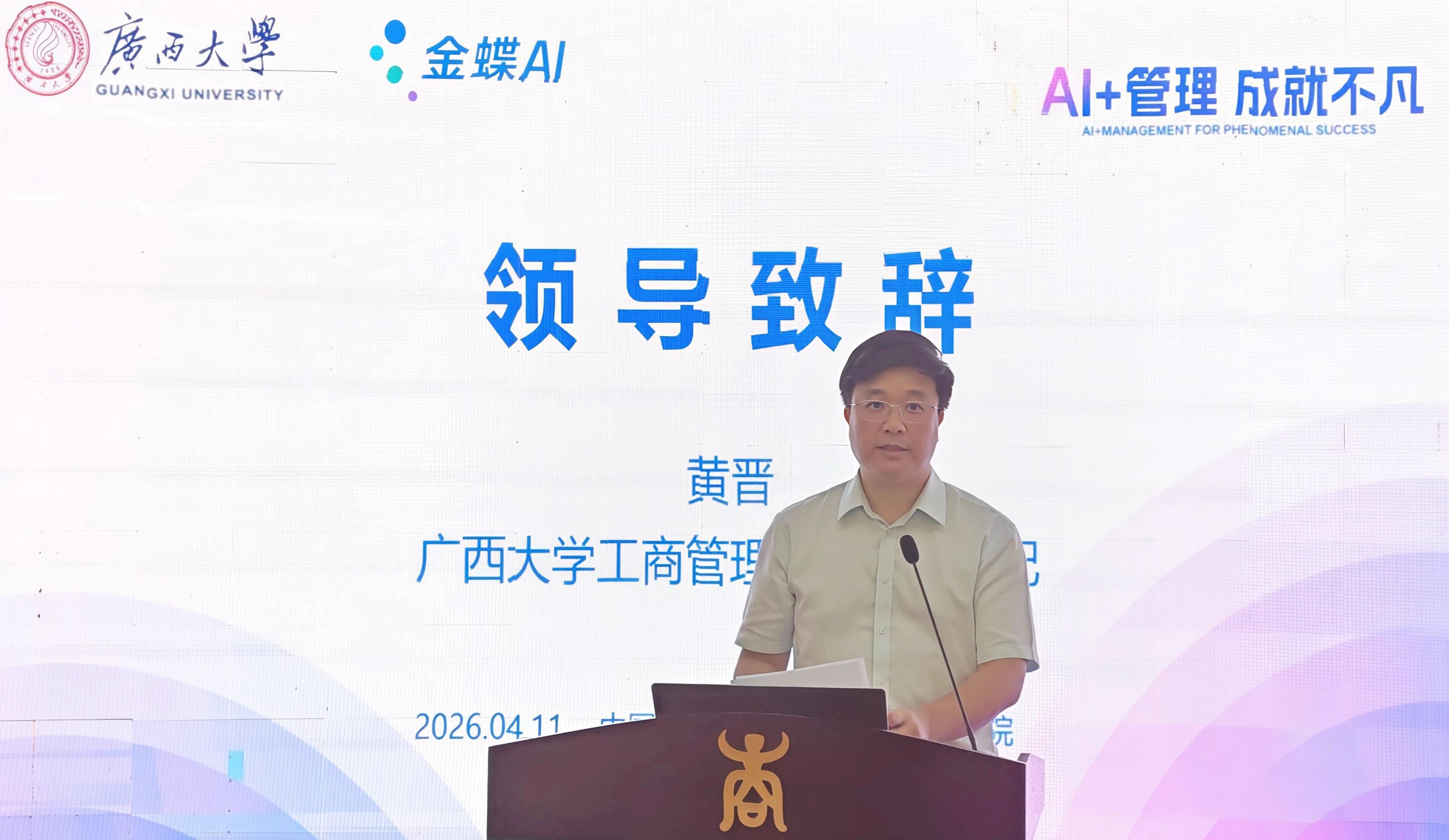 4月11日,由广西大学工商管理学院和金蝶软件(中国)有限公司主办的“AI+人才培养”交流研讨会暨《AI智能体设计与应用》师资培训活动在我院举行。来自全区高校及行业的专家学者齐聚一堂,共同探讨人工智能背景下商科教育转型与人才培养模式创新之路。