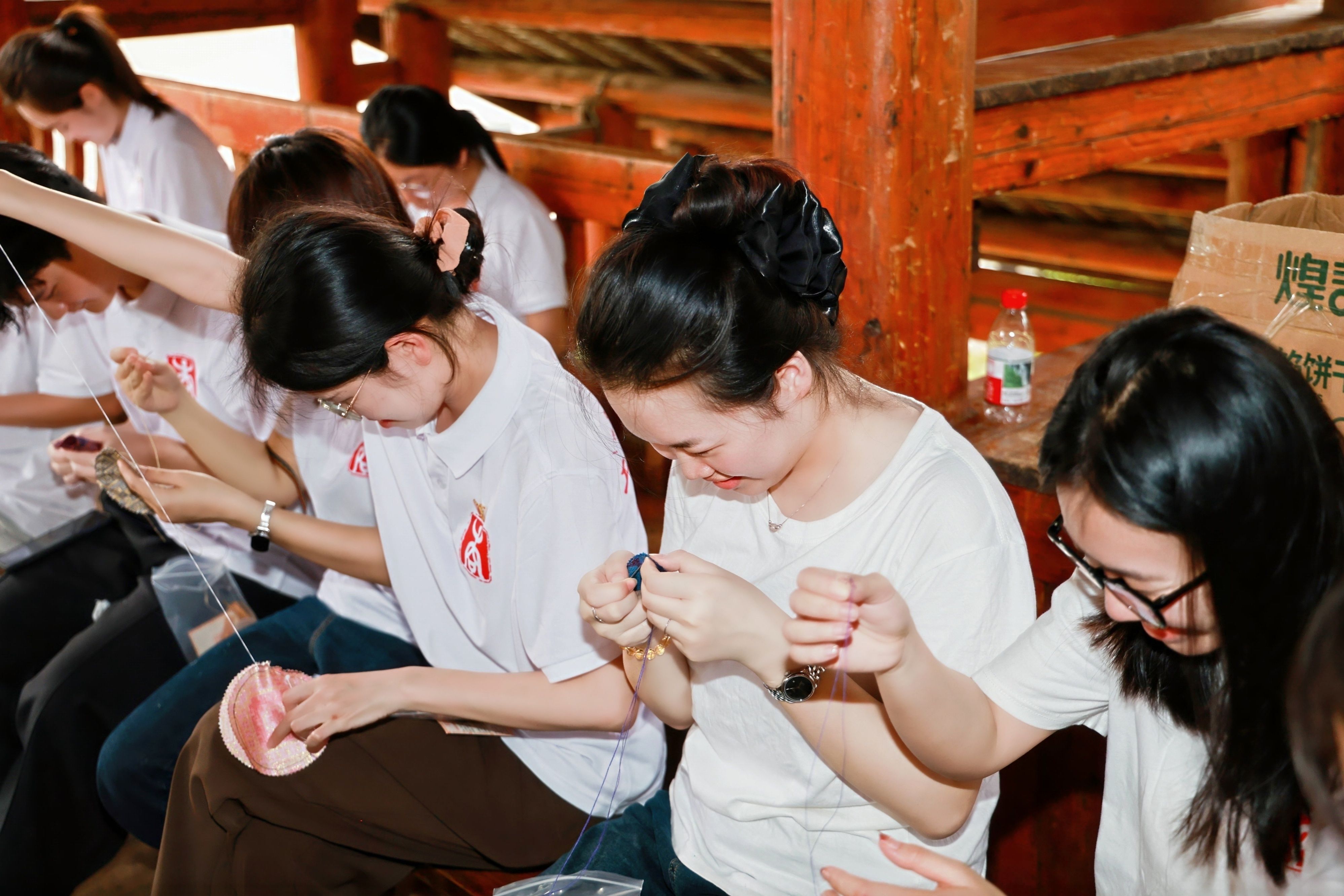 师生制作非遗手工壮锦香包