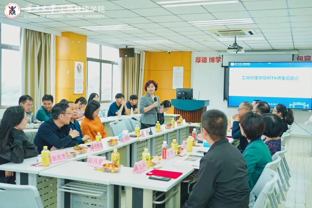 当晚18:30起,多场师生见面会分别在学院各教室同步举行,覆盖MBA各方向(科技产业运营、中国-东盟国际商务管理、数智化运营管理、科技金融、企业经营与管理五大模块)、EMBA、会计硕士和旅游管理硕士等项目。各位导师从专业学习、工作实践与行业发展等多个角度,与学生们进行亲切深入交流,加深了同学们对各行各业的认知,加深理论联系实际,为今后的学习研究助力。