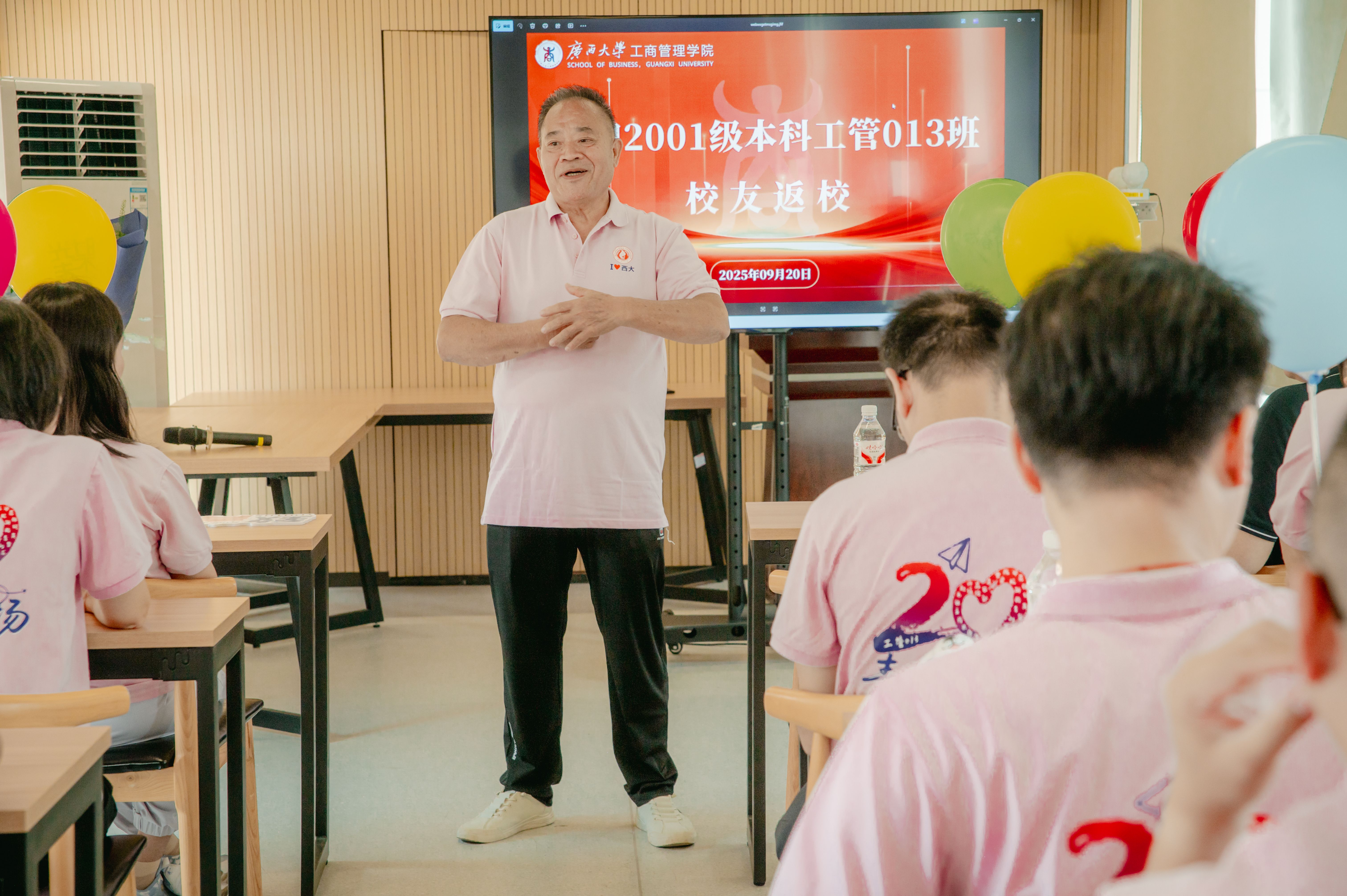 一别廿载,今朝终聚;同窗情浓,岁月未改。2025年9月20日,广西大学工商管理学院2001级工管013班近30名校友怀揣思念重返母校,共赴这场跨越二十年的青春之约,圆满举办毕业20周年返校活动。大家身着统一班服,或漫步于熟悉的校园小径,或围坐于曾经的教室,在满溢的温情中共叙青春往事,见证母校与学院的蓬勃发展。